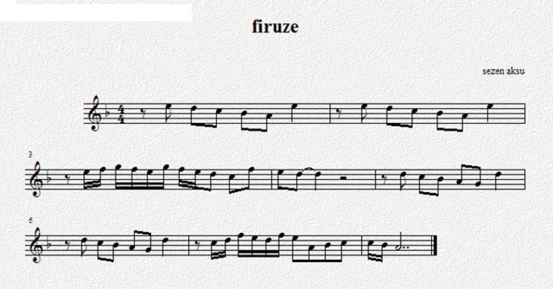 Sevilen şarkılardan biri olan Firuze Şarkısının keman notalarını sizlerle paylaşıyoruz. Diğer şarkıların keman notalarını sitemizden takip edebilirsiniz.